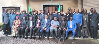 WAHASHAMU MAASKOFU WA BARAZA LA MAASKOFU KATOLIKI TANZANIA WATEMBELEA UBALOZI WA TANZANIA ROMA 17 MEI 2023