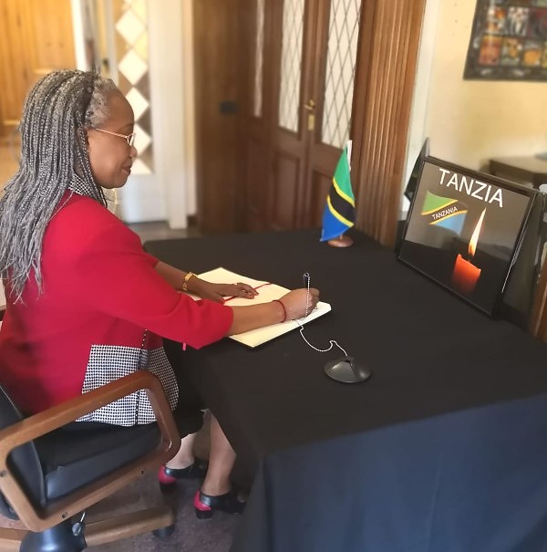 Balozi wa Tanzania nchini Italy ana ushirikiano mzuri na Mabalozi wenzake wa Jumuiya ya Afrika Mashariki (EAC) na Jumuiya ya maendeleo ya nchi za kusini mwa Afrika (SADC). Katika kudhihirisha ushirikiano huo mzuri, pichani anaonekana Mheshimiwa Balozi wa Burundi nchini Italy Bibi Nisubile, akiwa ni mmoja kati ya Waheshimiwa Mabalozi wengi waliofika Ubalozini kusaini kitabu cha rambirambi wakati wa ajali ya MV Nyerenyere Kisiwani Ukerewe.