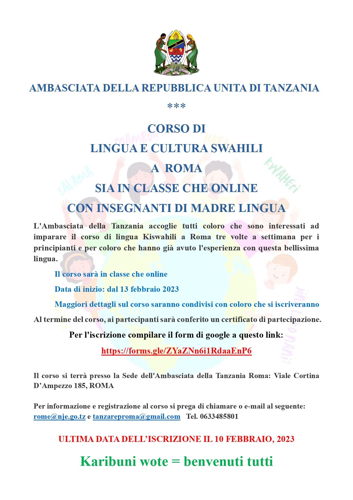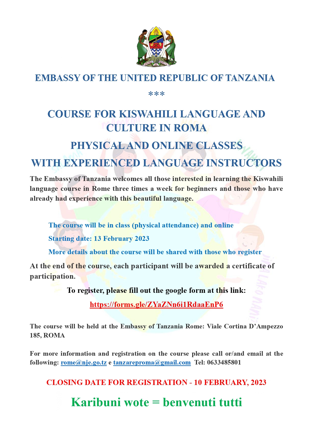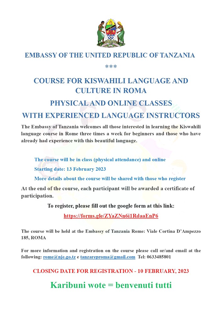 ONLINE REGISTRATION FOR SWAHILI LANGUAGE AND CULTURAL COURSE