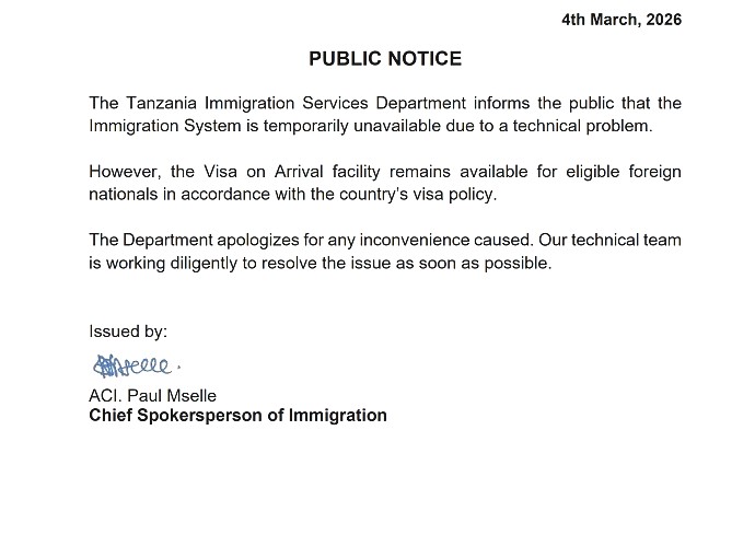 The Embassy of the United Republic of Tanzania in Rome has temporarily suspended issuing of VISA due to a technical problem facing the central Immigration System. However, visa on arrival service remains…